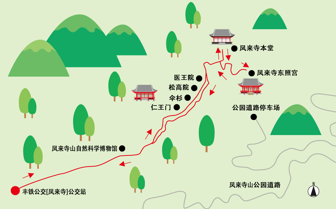 这是围绕凤来寺山的自然和历史建筑的路线。从丰铁公交“凤来寺”公交站出发,周游各个名胜,可以参观国家指定名胜天然纪念物凤来寺山,重要文物仁王门,以及东照宫,内容很丰富,一年四季都可以游览,特别推荐秋季的红叶。
