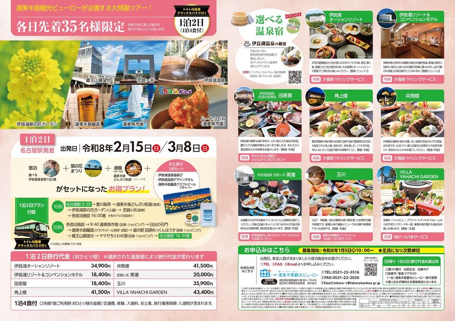 【日帰りプラン:浜松駅発着】35名様限定!!!