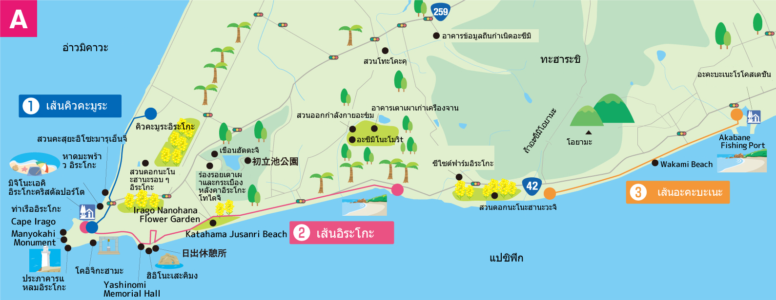 เป็นคอร์สที่เกือบจะเป็นเส้นตรงมุ่งสู่ชายฝั่งทางใต้ของคาบสมุทรอะซึมิ ประกอบด้วยช่วงระยะที่ซ้ำซ้อนกันมีทั้งเส้นทางเดิน/ทางจักรยานและทางหลวงเป็นต้น เส้นทางที่เลียบชายฝั่งทะเลเป็นถนนเรียบ สามารถเพลิดเพลินกับการขี่จักรยานรับลมทะเลอย่างสุขอารมณ์ และอย่าพลาดชมจุดท่องเที่ยวที่อยู่ระหว่างทางด้วย