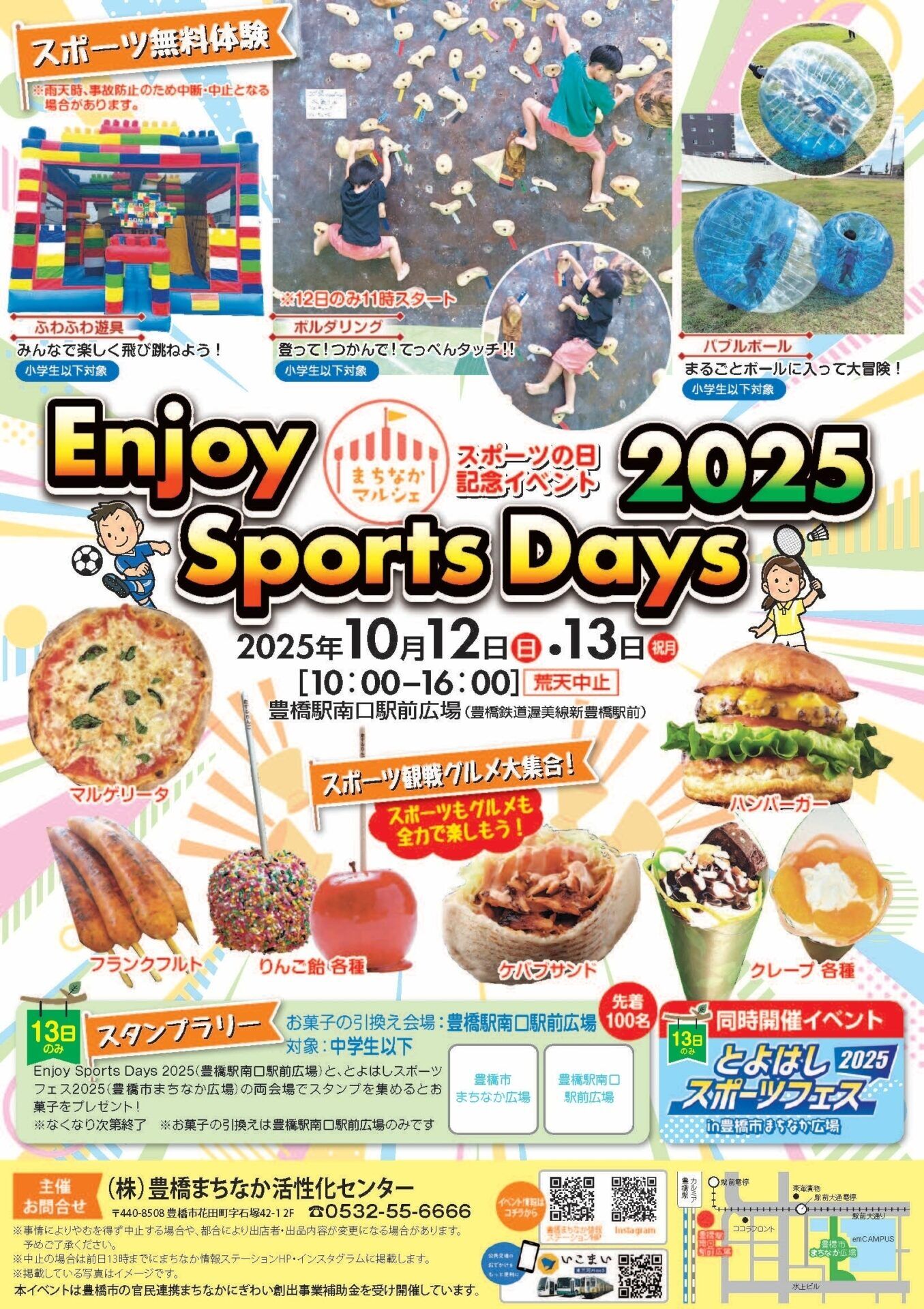 13日(月・祝)は本イベント会場(豊橋駅南口駅前広場)と「とよはしスポーツフェス2025」(豊橋市まちなか広場)の両会場でスタンプを集めるとお菓子をプレゼント!(先着100名様、対象:中学生以下)
