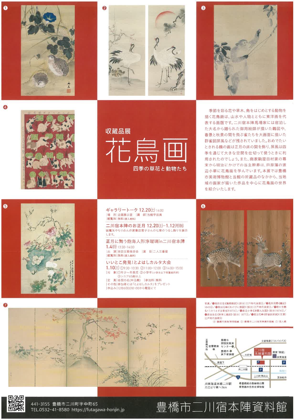 二川宿本陣資料館と豊橋市美術博物館の所蔵品から、東三河地域にゆかりのある画家たちが描いた花鳥画の世界を紹介します。