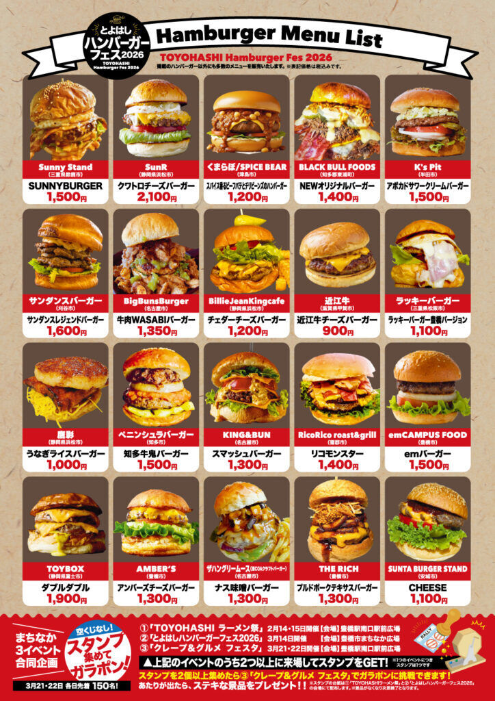 ※スタンプ台紙は、①「TOYOHASHIラーメン祭」と②「とよはしハンバーガーフェス2026」にて配布します。