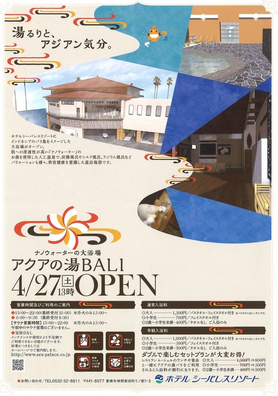 ホテルシーパレスリゾートにインドネシアのバリ島をイメージした大浴場がオープンします。